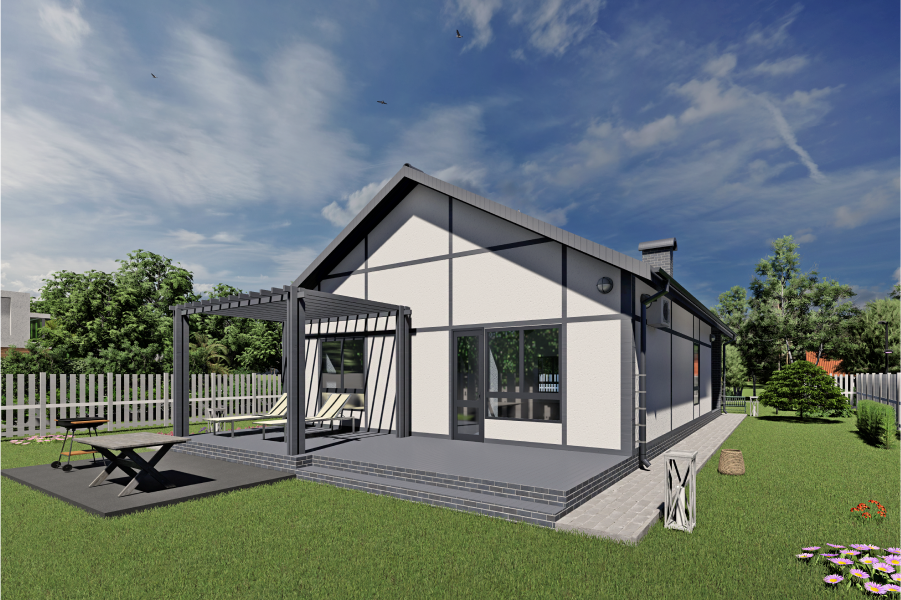 Выбрать участокИндивидуальный жилой дом «Бавария 100» - это одноэтажный дом, который идеально подходит для круглогодичного проживания. Он также может быть использован как дом "выходного дня" или как место для работы удаленно, но на природе.